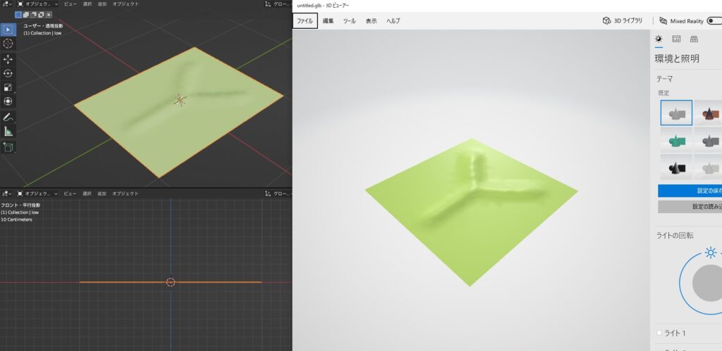 glbでエクスポートしてもちゃんとでこぼこして見える。