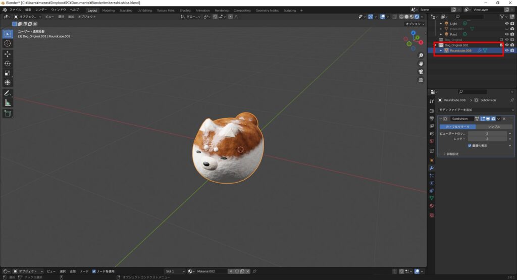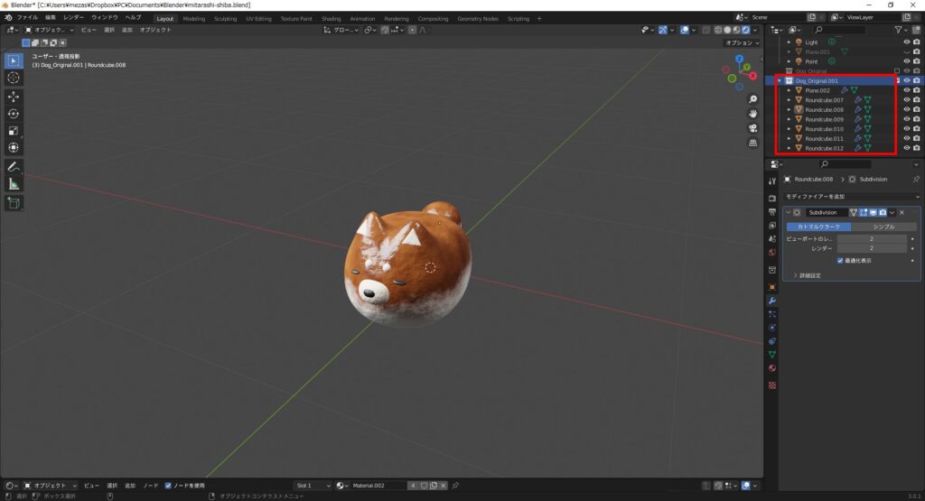 Ctrl+Jでオブジェクトを1つにしたら色が変わった