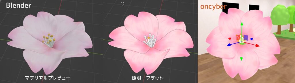 Blenderとoncyberの色を比較。