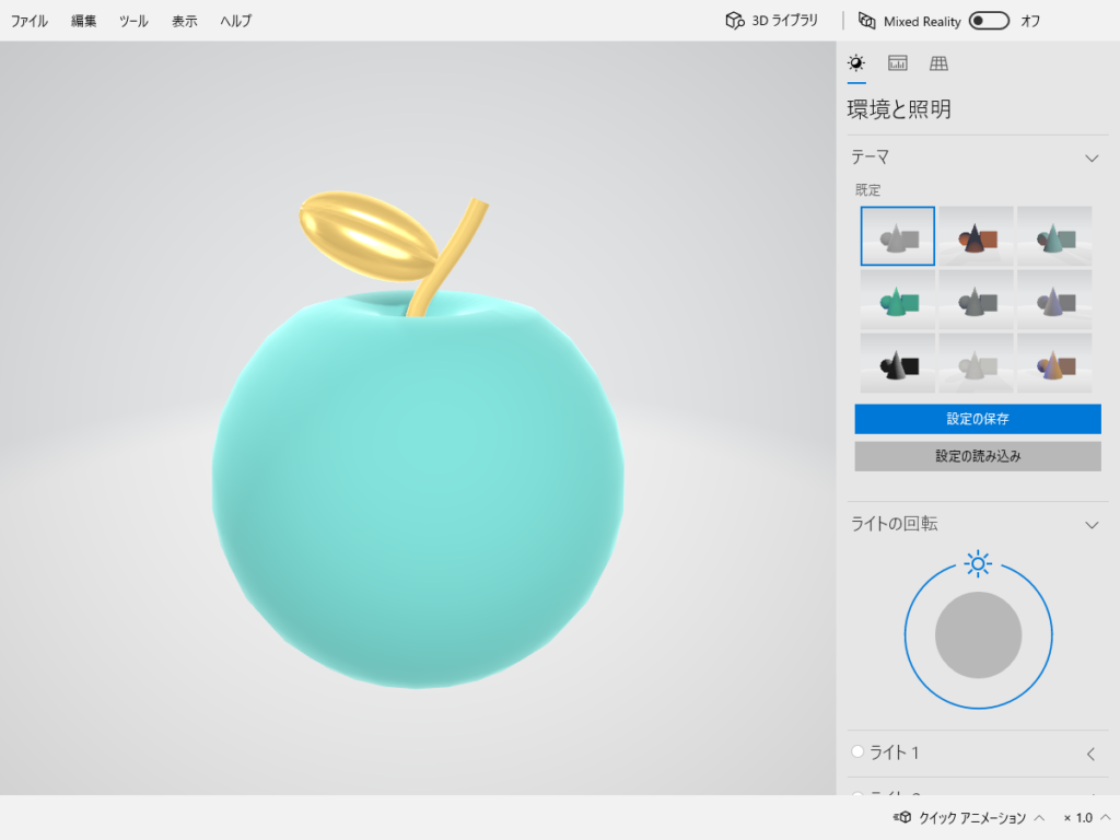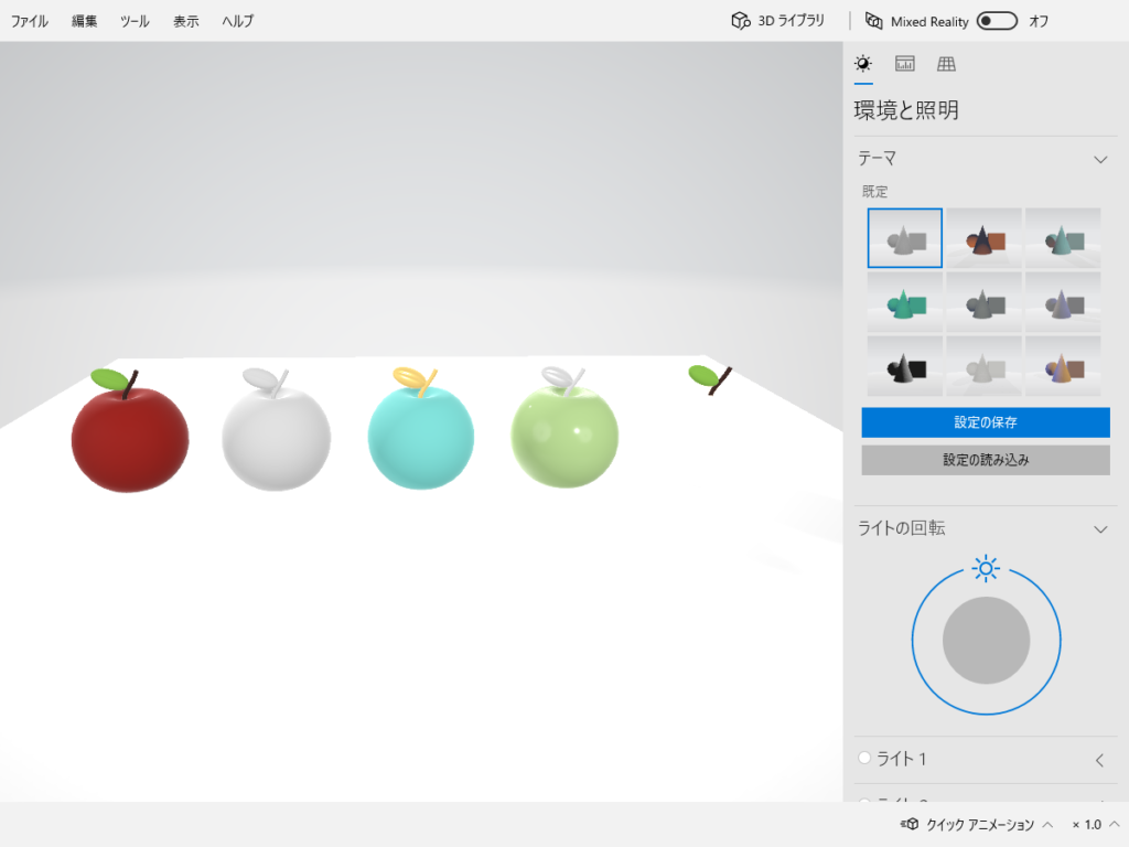 上記のビューワーの状態だとリンゴ1つ1つが遠すぎて細部が見えないので、3つめのリンゴ、1つだけで書き出してみた。