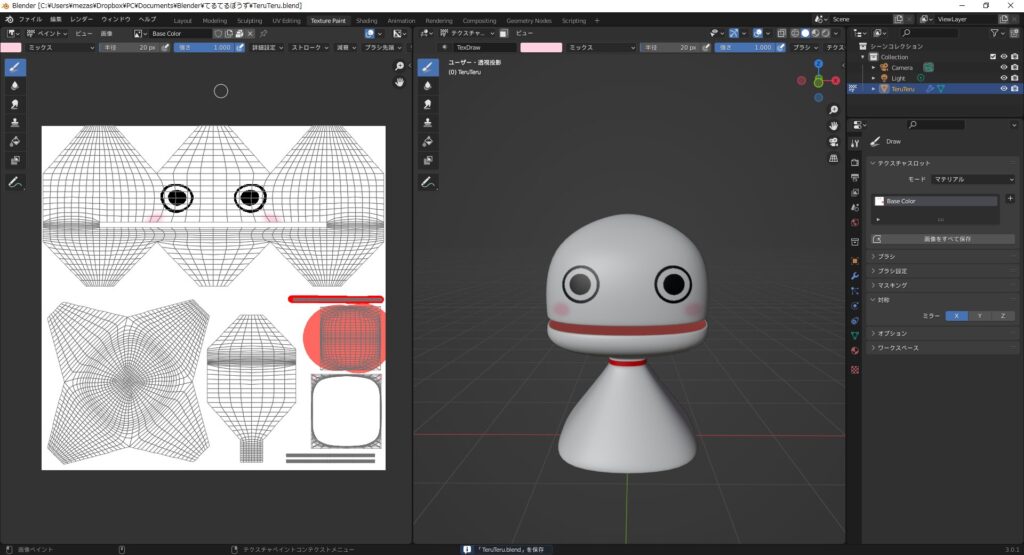 この動画はシリーズになっていて、ボーンを仕込んでアニメーションさせるまでが一連の流れになっているのだが、自分的にはボーンは早すぎるように思ったので、#03のテクスチャペイントまでにした。